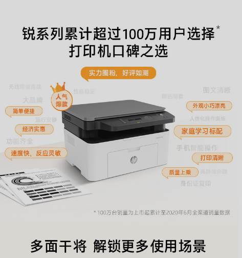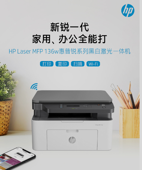 惠普(HP)136w 銳系列黑白激光多功能一體機(jī) 三合一 打印復(fù)印掃描 M1136升級(jí)款無(wú)線版