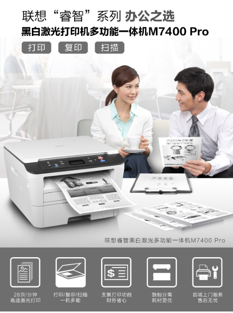 聯(lián)想(Lenovo)M7400 Pro 黑白激光多功能一體機(jī) 商用辦公家用打印 (打印 復(fù)印 掃描)