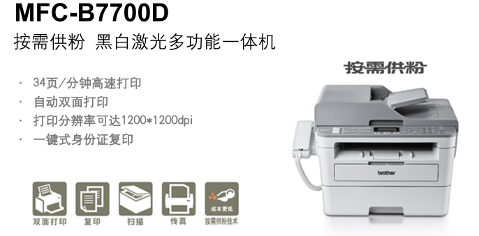 兄弟( brother) 黑白激光打印復(fù)印掃描一體機 MFC-B7700D按需供粉 雙面 標(biāo)配+1個原裝粉盒