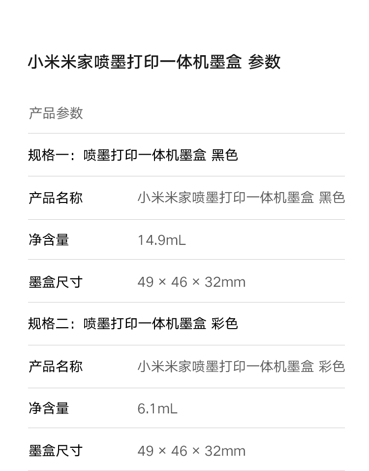 參數(shù) [品牌] 小米 [型號] 小米黑色墨盒 [產(chǎn)地] 中國大陸 [類型] 墨盒 [單位] 個